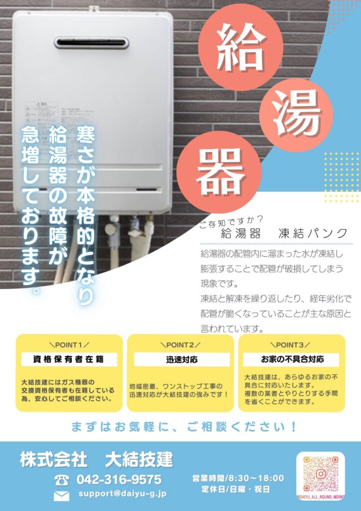 この時期、突然お湯が出なくなってしまっては困りますよね…